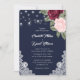 Elegante rustikale Marineblau, bordeauxrot und rot - Einladung zur Hochzeit mit wunderschönen Aquarellfarben-Blume vor marineblauem Hintergrund mit weißem Blumengeflecht und Lichtern an der Saite. Die Hochzeitsdetails werden in einem modernen und stilvollen Script-Schriftart geschrieben.
