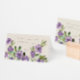 Diese Hochzeitssaison bietet ein atemberaubendes, handgemaltes Aquarellbild mit violetten Blumen und grünen Blätter und schafft eine elegante und romantische Ästhetik. Die Blume sind aufwändig mit zarten Pinselstrichen gefertigt, während die grünen Blätter dem Gesamtdesign Tiefe und Balance verleihen. Die Suite ist auf einem weichen beigen Hintergrund bedruckt, was den Gästen ein warmes und einladendes Ambiente verleiht. Die Schrift- und Serif-Schriftart, die für den Text verwendet werden, sind sorgfältig ausgewählt, um das Blumendesign zu ergänzen, was den ästhetischen Reiz der Suite insgesamt erhöht.