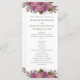 Das Hochzeitsfeierprogramm umfasst ein Aquarellkorallenrosa und eine lila Rose. Ein wunderschönes Blumendesign mit Blumen und Blättern.