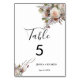 Elegante und moderne Hochzeitsstil-Tischnummer mit bordeauxroter und rosafarbener Blume und zeichnend grüner Wasserfarbe. Ideal für eine Hochzeit im Herbst oder Winter.