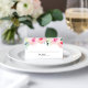 Die Platzkarten im gefalteten Stil verfügen über einen hübschen Blumenrahmen mit blühenden Blume in sanften Rosa-, Blau-, Aqua- und Grüntönen.