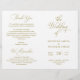 Dies ist die faltbare Trauungskarten-Programm-Karte, in eleganter Gold-Farbe gethemed. Es ist mit Scrollakzent entworfen, der personalisiert werden kann mit benutzerdefiniertem/personalisiertem Text für Ihr Brautparty, Zeremonie Details, Gedenkhinweise und Dankeschön-Nachricht. ** Hinweis: Diese Textgewichtspapierprogramme kommen flach an und müssen zum Zusammenbauen zusammengelegt werden.