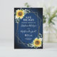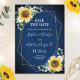 Diese speichern die Dattelkarten mit einem Aquarellblumen-Design mit Sonnenblumen und weißen Blume mit Eukalyptusblättern auf einem marineblau-blauen Kornhintergrund mit einem goldenen geometrischen Rahmen von Imitaten. Personalisieren Sie diese Karten mit Ihrem eigenen Text. Diese Karten sind Teil einer Sammlung, die auch andere Hochzeitsartikel enthält. Bitte sehen Sie sich die Sammlungs-Seite an oder besuchen Sie unseren Shop, um das komplette Sortiment zu sehen.