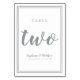 Hochzeitsfeier Tischnummer 2 einfach grau und weiß