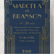 Alles in einer Hochzeitseinladung mit Art Deco Eisenwerk Design und Deko Schriftart. Die Hintergrundfarbe kann bearbeitet werden.