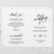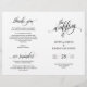 Dies ist die faltbare Hochzeitszeremonie Programmkarte, in elegantem Skript in schwarzer Farbe themed. Es ist mit Scrollakzent entworfen, der personalisiert werden kann mit benutzerdefiniertem/personalisiertem Text für Ihr Brautparty, Zeremonie Details, Gedenkhinweise und Dankeschön-Nachricht. ** Hinweis: Diese Textgewichtspapierprogramme kommen flach an und müssen zum Zusammenbauen zusammengelegt werden.