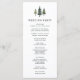 Unser winterliches, rustikales und schicke Hochzeitsprogramm umfasst Ihre Zeremonie Details mit einem Trio von Kiefern in üppigen Jägergrün. Auf der Rückseite finden Sie die Mitglieder Ihrer Hochzeitsfeier mit leicht bearbeitbaren Textfeldern. Koordiniert mit unserer Hochzeitskollektion von Tall Pines. Verwenden Sie die Vorlagenfelder, um Ihre Zeremonie- und Brautparty-Informationen hinzuzufügen, und klicken Sie dann auf "Anpassen", um Elemente bei Bedarf neu zu positionieren.