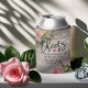 Polterabend kann kühle / koozies Vorlagen - Vintage Aquarellblüte und elegante String-Lichter auf rustikalen Holz Textur Hintergrund. Ein perfektes Design für Ihren großen Tag. Alle Textstile, Farben, Größen können an Ihre Bedürfnisse angepasst werden!