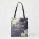 Gastgeschenk Hochzeit Herzlich willkommen und vielen Dank, dass Sie Vorlagen mit Taschen - elegante weiße Hydrangea-Blume und Streichleuchten auf Vintagem blau-blumigen Linenhintergrund geschenkt haben. Ein perfektes Design für Ihren großen Tag. Alle Textstile, Farben, Größen können an Ihre Bedürfnisse angepasst werden!