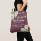 Gastgeschenk Hochzeit Herzlich willkommen und vielen Dank für die Vorlagen von Bags - Elegante weiße Wasserfarbe Hydrangea Blume und String Lights auf Burgundy Red Background. Ein perfektes Design für Ihren großen Tag! Alle Textstile, Farben, Größen können an Ihre Bedürfnisse angepasst werden.