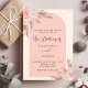 Für eine moderne Hochzeit im bohischen Stil. Ein Bogenrahmen und eine Rose mit goldenem Marmor als Hintergrund. Die Einrichtung ist mit Rose-Gold und rosa Blumen, Rose und Pampas-Gras dekoriert. Personalisieren und hinzufügen von Namen und Details.