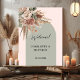 Weich rosa, rosa, mit einem halbgrünen Gewölberahmen geschmückt mit gedämpften, erdigen Rose, Eukalyptusgrün und Pampas-Gras. Personalisieren und fügen Sie Ihre Namen und Hochzeitsdatum.
