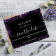 Bitte beachten Sie, dass dies Save the Date auf Flyer Papier und sehr dünn ist. Umschläge sind nicht enthalten. Für dicker Speichern Sie die Datumskarten (gleiche Gestaltung) besuchen Sie bitte unseren Shop. Ein modernes und elegantes Save the Date für eine Hochzeit. Schwarzer Hintergrund mit lila Imitat Glitzer. Glitzern. Personalisieren und fügen Sie ein Datum und Namen hinzu. Der Text: Save the Date ist mit einem großen angesagten, handgeschriebenen Stilskript geschrieben.