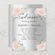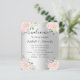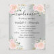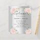 Ein Begrüßungs-/Programm, ein Timeline-Poster für eine Hochzeit. Stilvolle Imitat mit silberfarbenem Hintergrund, die mit rosafarbenen und weißen Blume geschmückt sind. Personalisieren und fügen Sie Ihre Namen und die Details. Schwarze Buchstaben.