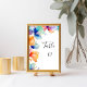 Helle Floral Wasserfarbe mit Blautönen, Orange und lila auf diesen Hochzeitskarten Tischnummer. Sehen Sie sich unsere Hochzeitskollektion für leuchtende Flora an.