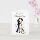 Die Hochzeitskarte wird mit einem Kunstdruck eines Paares gezeigt. Meldung Inside Passen Sie dieses Element an und fügen Sie Ihre eigene spezielle Nachricht hinzu oder kaufen Sie, wie es ist. Lizenziertes Bild