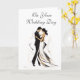 Die Hochzeitskarte wird mit einem Kunstdruck eines Paares gezeigt. Leere Innenseite. Passen Sie dieses Element an und fügen Sie Ihre eigene spezielle Nachricht hinzu oder kaufen Sie, wie es ist. Lizenziertes Bild