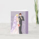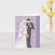 Die Hochzeitskarte wird mit einem hübschen Braut- und Bräutigam-Ausdruck gezeigt. Bleib drinnen. Passen Sie diese Karte an und fügen Sie Ihre eigene Nachricht hinzu oder kaufen Sie, wie es ist. Bild