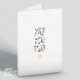 "Yay You Two" Einfache und schöne Gratulationskarte. Schwarze Typografie mit einem kleinen goldenen Herz auf weißem Kartenbestand