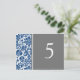 Elegante und klassische dunkelmarineblau-, grau- und weiße Hochzeitskarten mit klassischem und schicken Vintagen Damast-Muster. Passen Sie diese Karten an, um für jeden Tisch bei Ihrer Hochzeit eine eigene Tischnummer zu erstellen. Muster in einer breiten Palette von passenden Hochzeitsprodukten erhältlich.