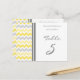 Elegante und moderne, hellgelbe, graue und weiße Hochzeitskarten mit lustigen Retro-Zickzack Zickzackmustern. Passen Sie diese Karten an, um für jeden Tisch bei Ihrer Hochzeit eine eigene Tischnummer zu erstellen. Geben Sie Ihre Namen und das Hochzeitstermin ein. Muster in einer breiten Palette von passenden Hochzeitsprodukten erhältlich.