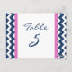 Elegante und moderne fuchsienfarbene, dunkelmarineblau-weiße Hochzeitskarten mit Retro und lustigen Zickzack Zickzackmustern. Passen Sie diese Karten an, um für jeden Tisch bei Ihrer Hochzeit eine eigene Tischnummer zu erstellen. Muster in einer breiten Palette von passenden Hochzeitsprodukten erhältlich.