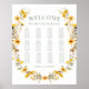Erleben Sie Romantik und Eleganz mit diesem raffinierten Plakatposter, das mit einer eleganten gelben Wildblume verziert ist. Dieses Poster mit insgesamt 12 Tischen fügt Ihrer Hochzeitsdekoration eine raffinierte Touch hinzu.