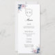 Ein hübsches, dustblau-rot-rosa Blumenmenü für den Empfang. Fügen Sie Ihre Initialen oben und Ihre Namen und das Datum unten, um zu personalisieren. Alle Felder können bearbeitet werden. Sehen Sie sich unsere Sammlung von passenden Hochzeitsprodukten an.