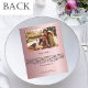 Eine elegante bohemianische Hochzeitskarte. Die Einrichtung ist in rosa Rose mit viel Wasser gehalten. Vorlagen für Ihre Namen, Datum und das Hochzeitsmenü. Ein goldenes Imitat und eine schicke staubige Rose Imitate metallische Hintergrundfarbe. Schwarze Buchstaben. Zurück: Imitate staubige Rose metallisch aussehend Hintergrund, Ihr Foto und fügen Sie Ihre Liebe Story. Geben Sie den Leuten etwas, worüber sie reden können, während sie gewartet werden, damit das Essen serviert wird!