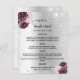 Ein elegantes, glamouröses Hochzeitsmenü. Imitat silber aussehend, mit Glitzer aus Imitaten, Glitzern, bordeauxroten und rosa Blume dekoriert. 1 Blatt = 1 Menü, der von Kante bis Kante gedruckt wird