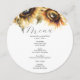 Diese Karte mit Hochzeitsmenüs bietet eine oberste Linie von Aquarellsonnenblumen in goldgelben und braunen Farbtönen. Die Karte kehrt um, um mehr Sonnenblumen zu zeigen. Verwenden Sie die Vorlagenfelder, um Ihre personalisierten Daten abzufragen. Das rustikale runde Design ist eine bezaubernde Wahl für Garten und Hochzeitsthemen. Um mehr individuelle Hochzeitsmenüs und Ideen wie diesen Besuch www.zazzle.com/dotellabelle Einzigartige Aquarellkunst und Design - Don Tell A Belle.