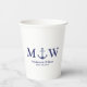 Hochzeit nautische Anker Marine blau und weiß Monogramm Initialen Papier Cups. Minimalistisches, elegantes Design personalisierbarer Karo der Erholung der Kollektion für Favoriten, Geschenketiketten, Aufkleber, Siegel, Etiketten, Party-Vorräte, Geschenktaschen, Geschenkboxen, Karten, usw. ideal für Seebadestrandfeste Hochzeiten