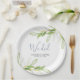 Diese Teller aus Hochzeitspapier sind mit einem Blattwerk aus Wasserfarben versehen. Die Worte "Wir haben" sind Set in der modernen Schriftzeichen-Typografie. Eine botanische Wahl für Hochzeiten, ein Probe-Dinner oder ein elopiertes Party. Weitere Designs wie diesen besuchen www.zazzle.com/dotellabelle Einzigartige Aquarellkunst von Victoria Grigaliunas von Do Tell A Belle.