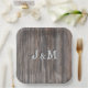 Teller aus Holz mit Platz für Initialen in der Mitte. Nutzen Sie eine lässige, rustikale Hochzeitsfeier, eine Dusche für das Ehepaar oder einen Empfang.