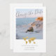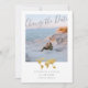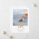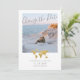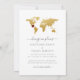 Das Foto ändert die Terminskarte für eine Reise- oder Zielhochzeit, die mit minimaler und moderner Typografie neu geplant oder verschoben werden musste, und eine Goldweltkarte mit bearbeitbarer Herzposition auf der Rückseite. Klicken Sie auf Weiter, um das Herz zu bewegen oder die Schriftart zu ändern.