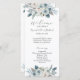 Genießen Sie den Charme einer winterlichen Hochzeitsfeier mit unserem bezaubernden Blue Winter Floral Wedding Set. Dieses exquisite Programm ist mit zarten Blumen geschmückt, die die ruhige Schönheit der Saison hervorrufen. Personalisieren Sie jedes Detail mit Ihren Namen und Datum. Finden Sie die passende Einladungspauschale, die Sie mitnehmen können!