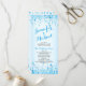 Dieses charmante und elegante Programm besticht durch subtile Aquablau-Farbtöne. Diese Einladung würde großartig für Ihre Hochzeit oder Veranstaltung suchen. Es ist vollständig anpassbar mit Ihrem Text, und Sie können den Schriftart und die Farben ändern, um es wirklich Ihren zu machen. Hinweis: Der Hintergrund ist ein grafischer Ausdruck von Kunstwerken und enthält keinen chaotischen Glitzer. Design von Amelia Carrie.