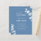 Ein modernes, elegantes Hochzeitsprogramm, Zeitleiste. Dusty blauer Hintergrund, mit Eukalyptus dekoriert, mit Sprigs. Personalisieren und fügen Sie Ihre Namen und Hochzeitsdetails. Wenn Sie mehr Text haben, ist es möglich, den Zeilenabstand zu verringern und auch Text auf der Rückseite hinzuzufügen. 1 Blatt = 1 Programm
