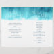 Doppelseitiges abstraktes modernes Aqua aquamarin auf einem weißen Hintergrund Hochzeitsprogramm. Bearbeiten Sie dieses Hochzeitsprogramm mit Ihrem eigenen Namen, Terminen, Zeremoniell, Begleitern von Hochzeitsfeiern und vielen Dank. Einfaches und dennoch elegantes Programm ersetzt einfach den Sample-Text durch Ihre Hochzeitsinformationen und faltet die Programme bei Lieferung in der Mitte. Modernes Hochzeitsfeierprogramm. Original abstrakte Waschmalerei und -design von Sarah Trett. www.sarahtrett.com für www.mylittleedenweddings.com