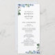 Ein schönes Design in Blau und Grün mit blauen Blumen und grünem Blattwerk. Sie können den Text und die Farben auf dieser Hochzeitsvorgabe anpassen.