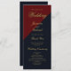 Ein modernes burgundisches und marineblaues Hochzeitsprogramm mit Goldtext.