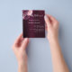 Bitte beachten Sie, dass dieses Programm auf Flugpapier und sehr dünn ist. Umschläge sind nicht enthalten. Für ein dickeres Programm (das gleiche Design) besuchen Sie bitte unseren Shop. Ein dunkler Gradientenbordeon. Sie sind mit bordeauxroten und rosafarbenen Blumen, Rosen und silberfarbenem Faux dekoriert.