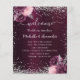 Ein dunkler Gradientenbordeon. Dekoriert mit Imitaten silbernen Glitzern und bordeauxroten und rosa Blume, Rose. Wenn Sie mehr Platz für Text benötigen, können Sie die Blume in der rechten Ecke entfernen. Sie können auch Text oder Fotos auf der Rückseite hinzufügen. 1 Blatt = 1 Programm, mit der Kante bis Kante bedruckt.