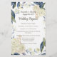 Die elegante Cream und Blue Watercolor Blume Wedding Dekoration umfasst cremeweiße Rosen, Gänse und Nelken mit blauen und grünen Blätter und Beeren. Schöne Aquarellmalung für ein klassisches und raffiniertes klassisches Thema. Sehr schön für den Sommer, mit Blumengarten Blume oder Blau-Weiß Thema.