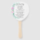Hübscher Hochzeitsfan in Weiß, mit Aquarellbildern von pastellfarbenen Blume auf der links Seite. Personalisieren Sie den Text auf beiden Seiten des Ventilators für Ihren Hochzeitstag.