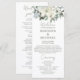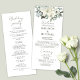 Fügen Sie Ihrer Zeremonie eine sanfte, romantische Touch mit diesem eleganten, blumengeschmückten Hochzeitsprogramm in Elfenbein hinzu. Oben bilden zarte Elfenbeinfloralen und Grünpflanzen eine anmutige Anordnung, die den reinen weißen Hintergrund perfekt ergänzt. Im Folgenden werden Ihre Zeremoniedetails in moderner schlängelgrüner Kalligraphie und Schrift dargestellt. Dieses minimalistische und dennoch raffinierte Programm ist ideal für rustikale, ländliche, garten oder elegante blumengeschmückte Hochzeiten. Ein schöner Sake und ein praktischer Führer für Ihre Gäste.
