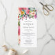 Dies ist ein Rack-Karte oder Hochzeitsfeier-Programm. Rose für antike farbenfrohe Blumengärten für eine wunderschöne böhmische Hochzeit. Vintage Stilfloralen. Farbenfrohe Blumengarten Rose & Blumen. Stilvolle Hochzeit von Boho. Ein formelles elegantes Design in floralen für Ihre Hochzeitsfeiern für eine boho inspirierte Hochzeit. Die Rose des antiken Blumengartens verzieren das Programm. Diese Programme ergänzen die Colorful Watercolor Flower Garden Wedding Suite oder sind ein separater Bestandteil jeder Hochzeitsfunktion.