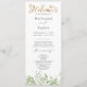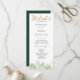 Dieses goldene Grün Watercolor Hochzeitsprogramm eignet sich ideal für eine inspirierte Feier. Das Design verbindet rustikale Eleganz mit modernem Waldambiente und bietet ein reichhaltiges, stimmungsvolles Blätter mit Eukalyptus. Passen Sie sich mit den Namen des Paares, dem Hochzeitsdatum, dem Veranstaltungsort, einem herzlichen Dankeschön-Hinweis, Zeremonie Details, Brautparty-Liste und einer optionalen "In Loving Memory"-Hommage an.