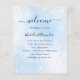 Ein Baby blauer Hintergrund mit Imitaten silbernen Glitzer, Glitzern. Personalisieren und fügen Sie Ihre Namen und Hochzeitsdetails. Schwarze Buchstaben. Wenn Sie mehr Text haben, ist es möglich, den Zeilenabstand zu verringern. Sie können auch Text auf der Rückseite hinzufügen. 1 Blatt = 1 Programm, mit der Kante bis Kante bedruckt.