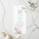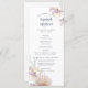 Die hellen Hochzeitsfeierprogramme an der Küste zeigen Ihnen Ihre Zeremonie Details auf der Vorderseite und Ihr Brautparty auf der Rückseite, betont durch Aquarellkorallen und Muscheldarstellungen in weichen, sommerlichen Pastellfarben.